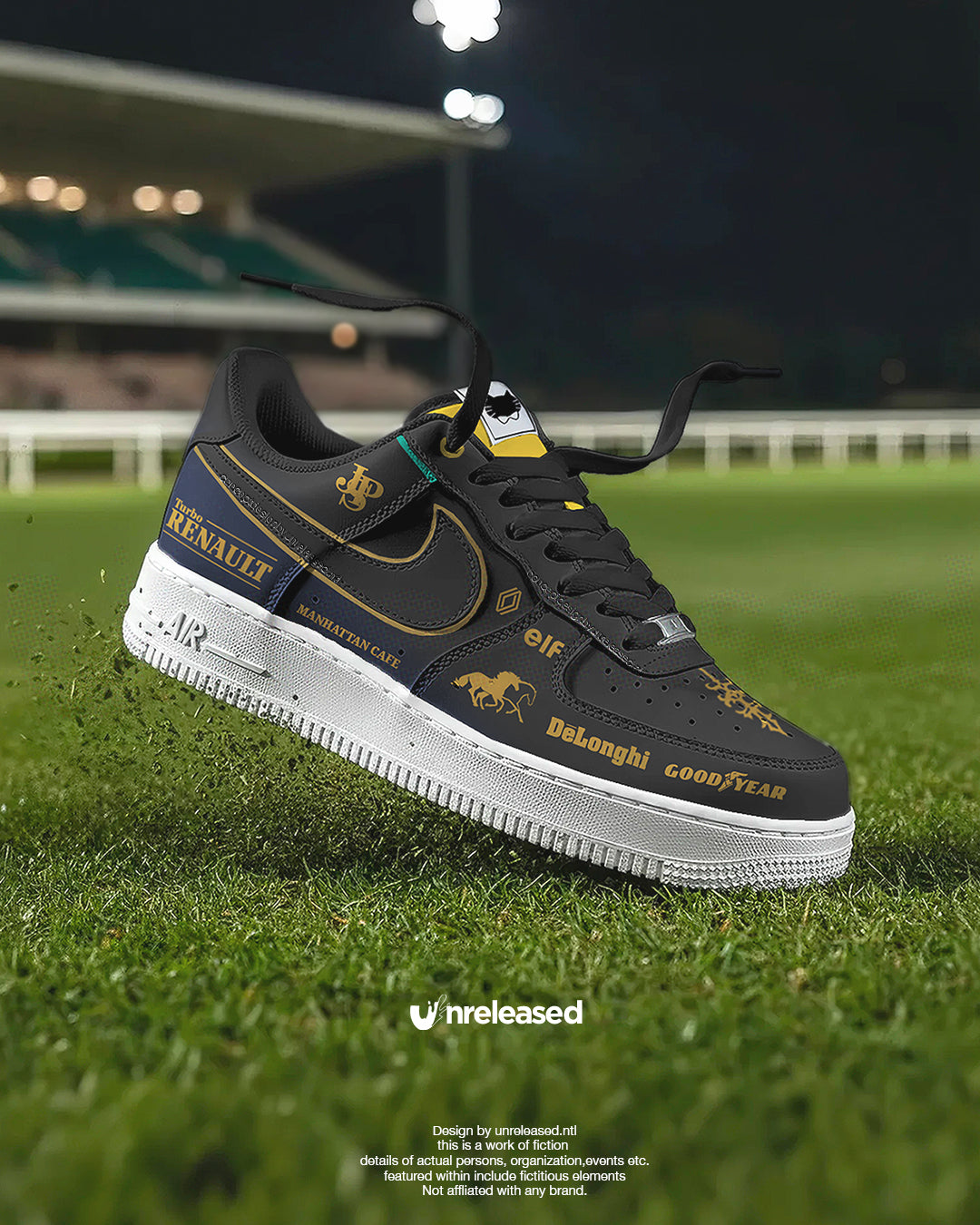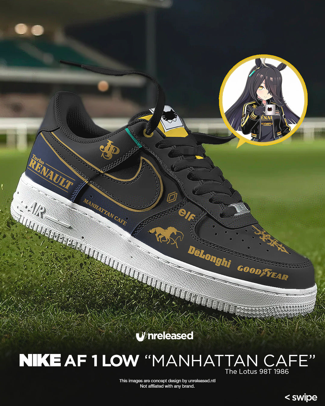 Design concept by @unreleased.ntl —no brand affiliation. A limited release of Manhattan Cafe: The Lotus 98T 1986 Inspired AF1. Specially handpainted by @nevertoolavish.