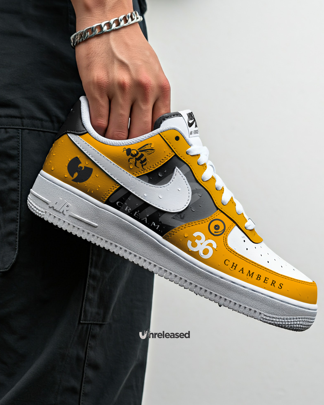 Design concept by @unreleased.ntl—no brand affiliation. A limited release of Wu-Tang Inspired AF1. Specially handpainted by @nevertoolavish.